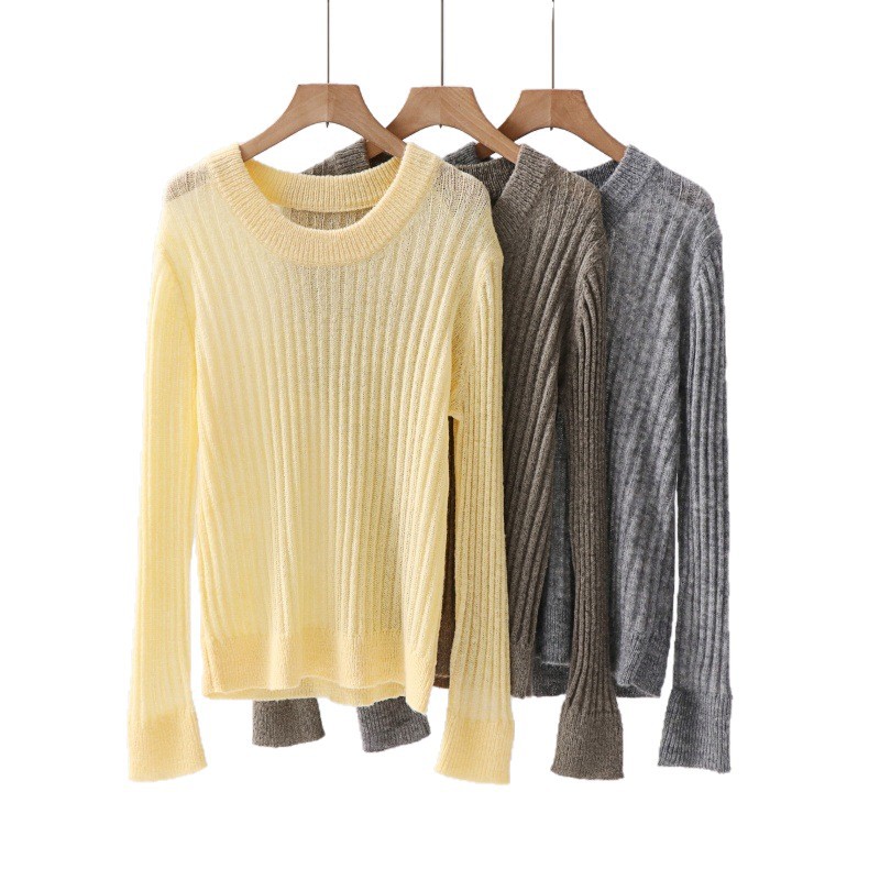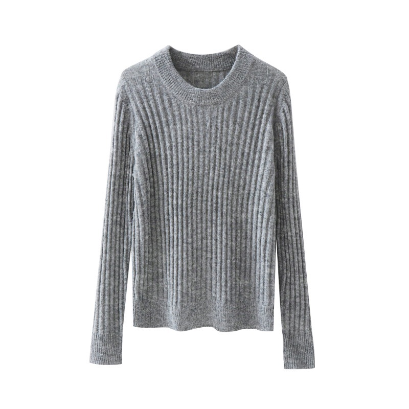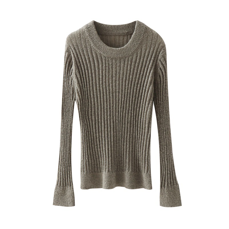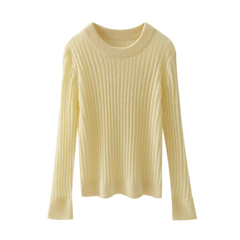 Round neck solid color pullover sweater for women